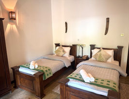 各部屋には専用バスルーム(温水シャワー)、タオル、エアコン、
